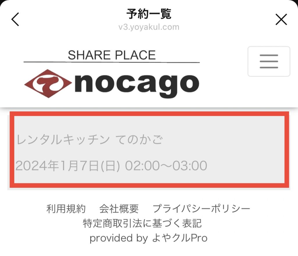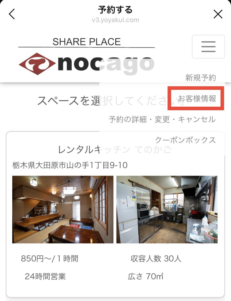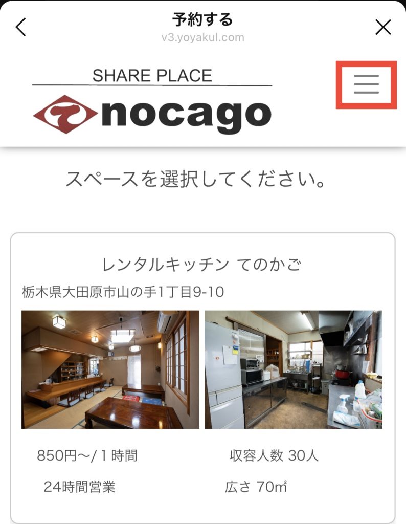 ①緑の四角枠の「ご予約」をタップ