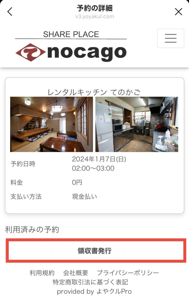領収書はお客様ご自身で取得願います